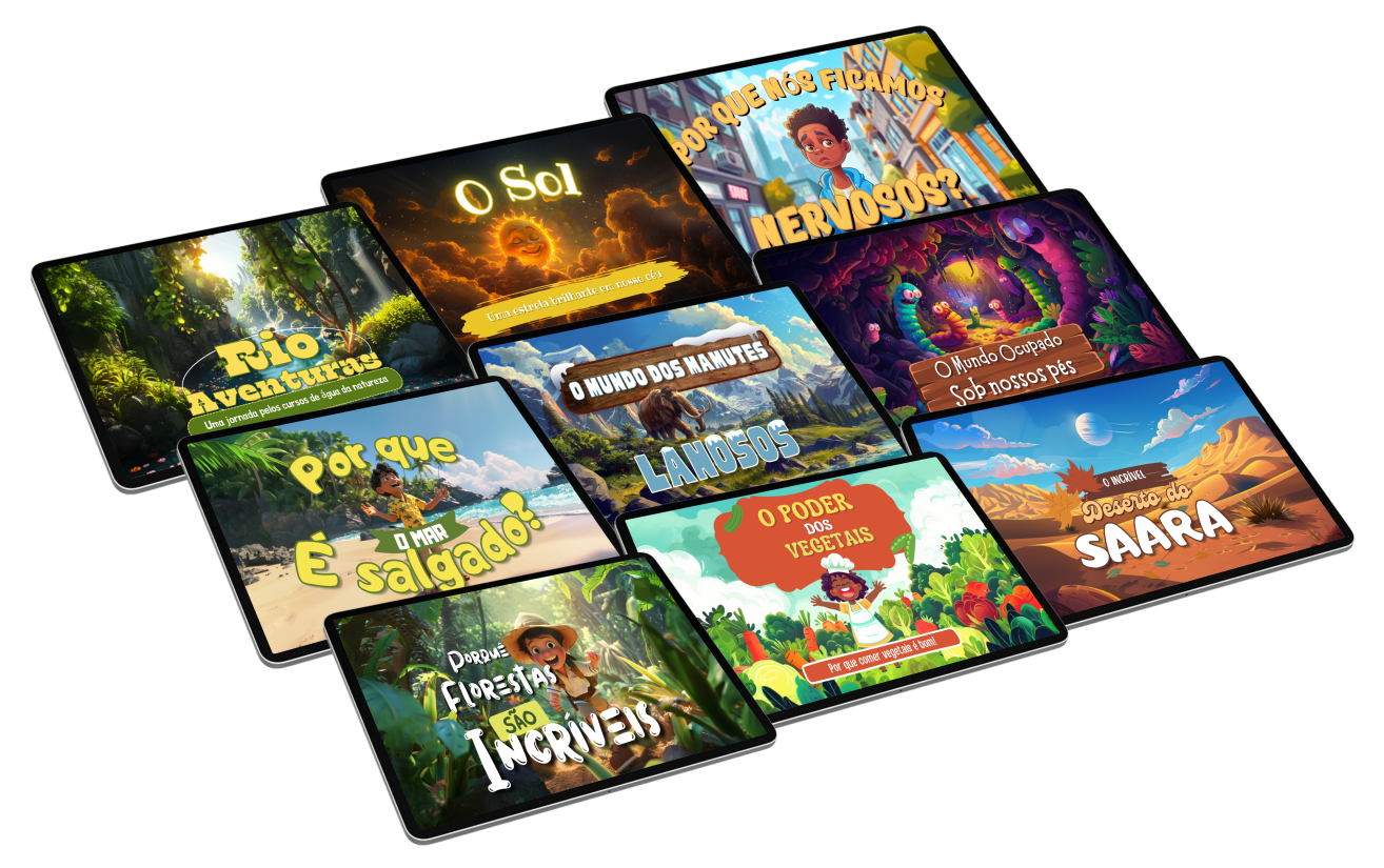 Além dos jogos interativos, o Mundo Kids Games oferece um bônus incrível de 20 histórias infantis em PDF, que incentivam o amor pela leitura e a imaginação:
